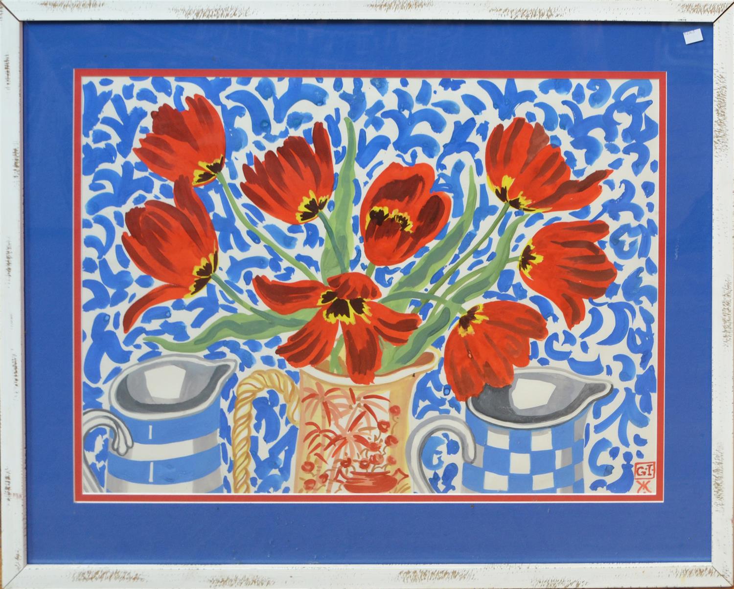 GREG IRVINE, FLORAL STILL LIFE, GOUACHE ON PAPER, 53 X 74CM