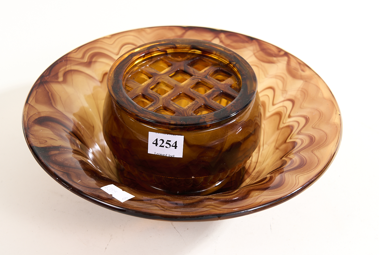 AN ART DECO AMBER CLOUD GLASS ROSE BOWL, DIA. 23.5CM, LEONARD JOEL LOCAL DELIVERY SIZE: SMALL