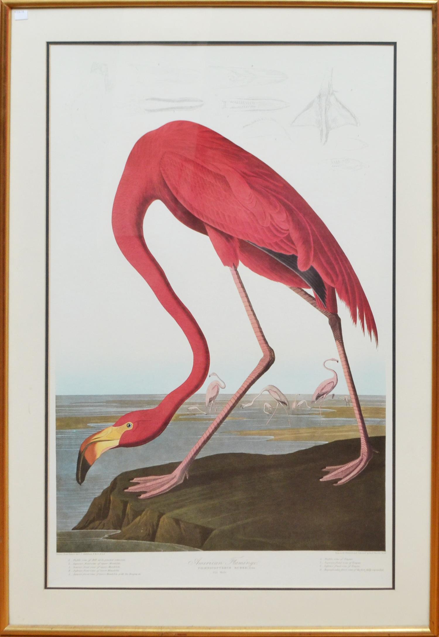 AFTER J. J. AUDUBON, AMERICAN FLAMINGO, REPRODUCTION PRINT, 89 X 60CM