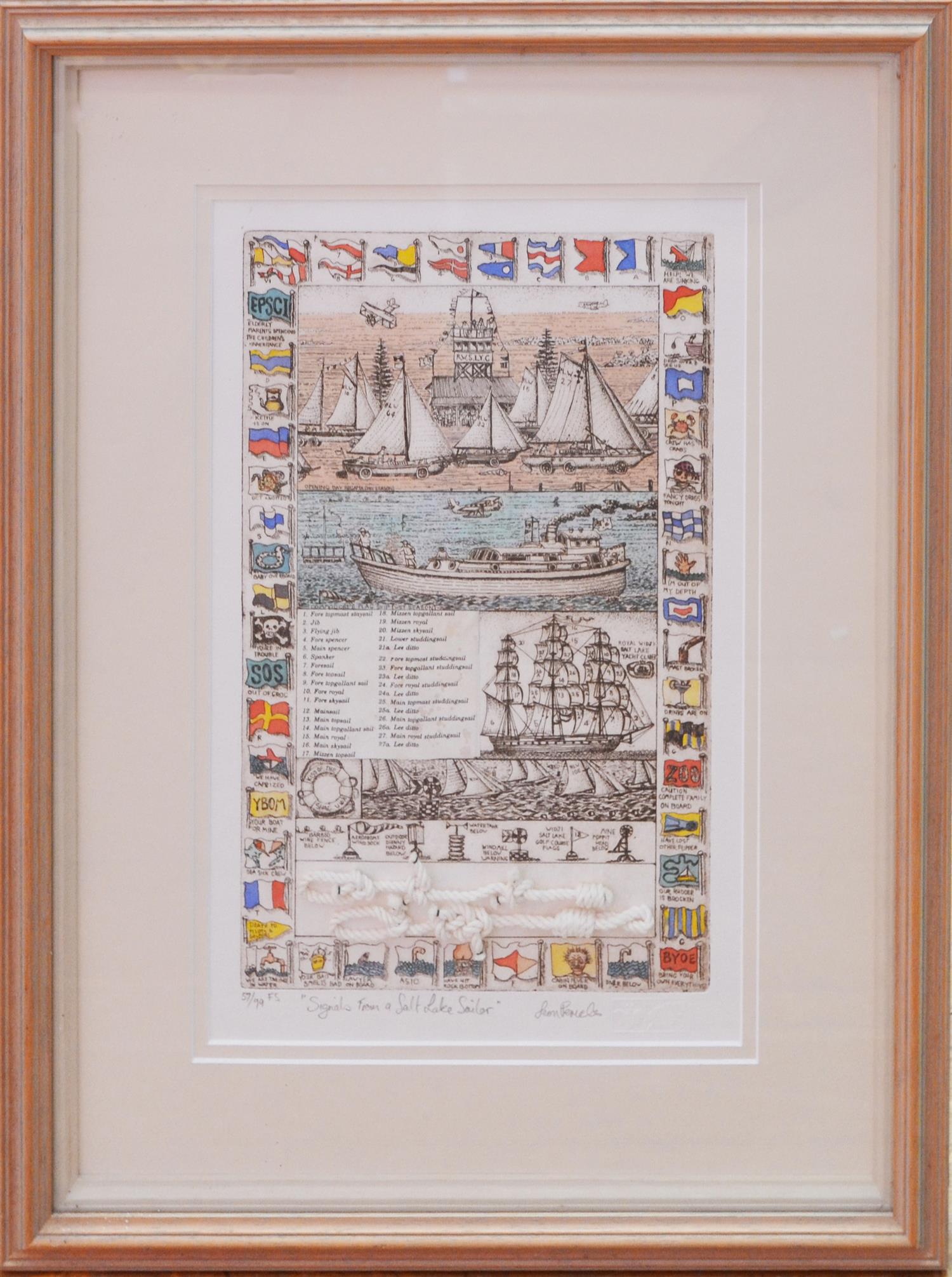 LEON PERICLES, SIGNALS FROM A SALT LAKE SAILOR, ETCHING WITH MIXED MEDIA 57/99 FS, 38 X 24CM