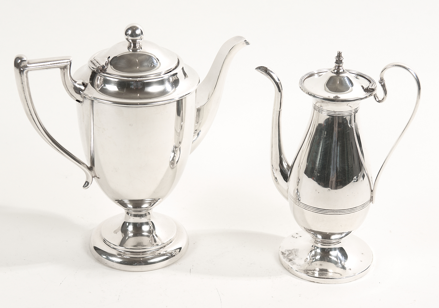 TWO SILVERPLATED TEAPOTS, LEONARD JOEL LOCAL DELIVERY SIZE: MEDIUM