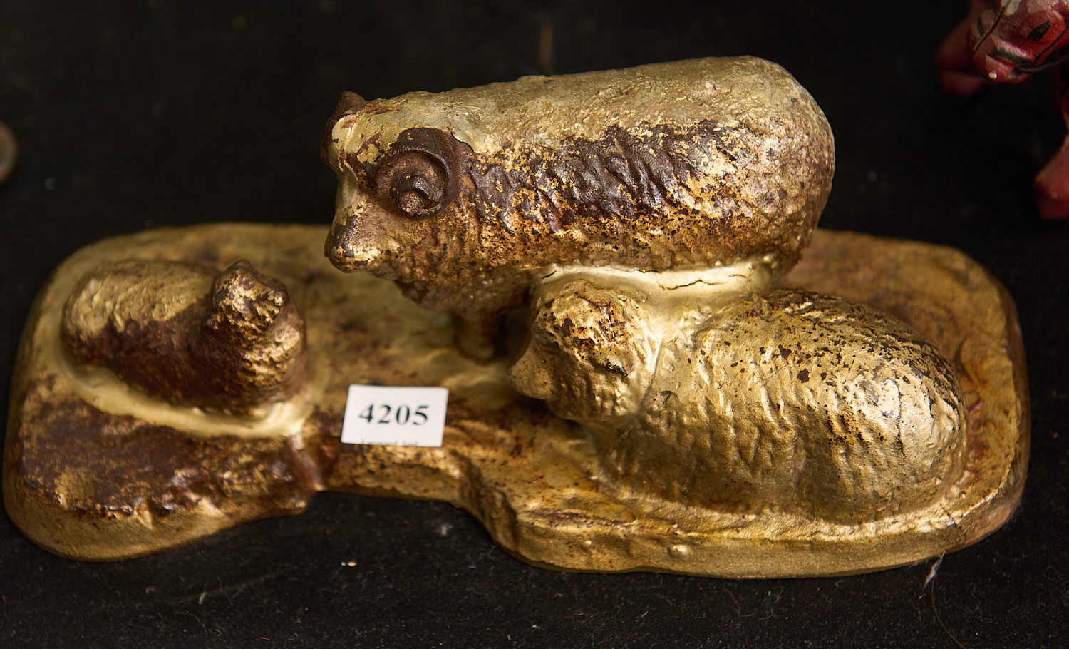 A CAST IRON FIGURE OF SHEEP AND RAMS W.26CM, LEONARD JOEL LOCAL DELIVERY SIZE: SMALL