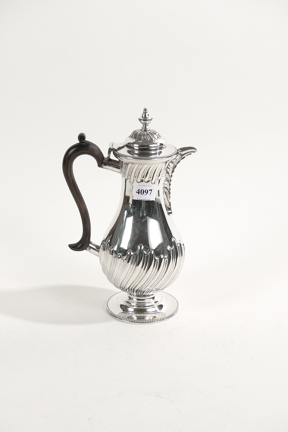 A WOODEN HANDLED SHEFFIELD SILVERPLATED COFFEE POT H.25CM, LEONARD JOEL LOCAL DELIVERY SIZE: SMALL