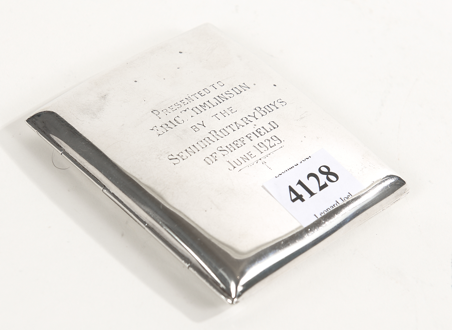 A STERLING SILVER CARD / CIGARETTE CASE - 91 GRAMS - PRESENTED BY SENIOR ROTARY BOYS H.8.5CM, LEONARD JOEL LOCAL DELIVERY SIZE: SMALL