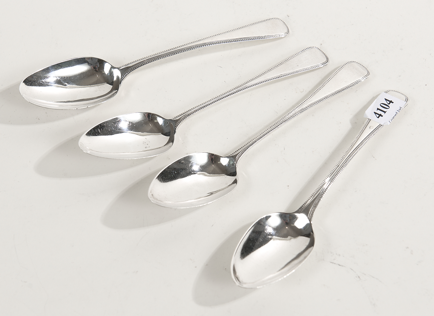 FOUR GEORGIAN STERLING SILVER SPOONS WITH BEADED EDGE - 140 GRAMS, LEONARD JOEL LOCAL DELIVERY SIZE: SMALL