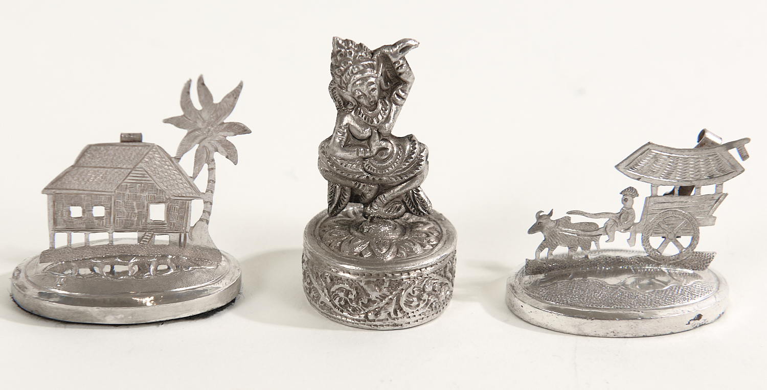 A COLLECTION OF THREE SILVER FIGURAL PLACE CARD HOLDERS H.5.5CM, LEONARD JOEL LOCAL DELIVERY SIZE: SMALL