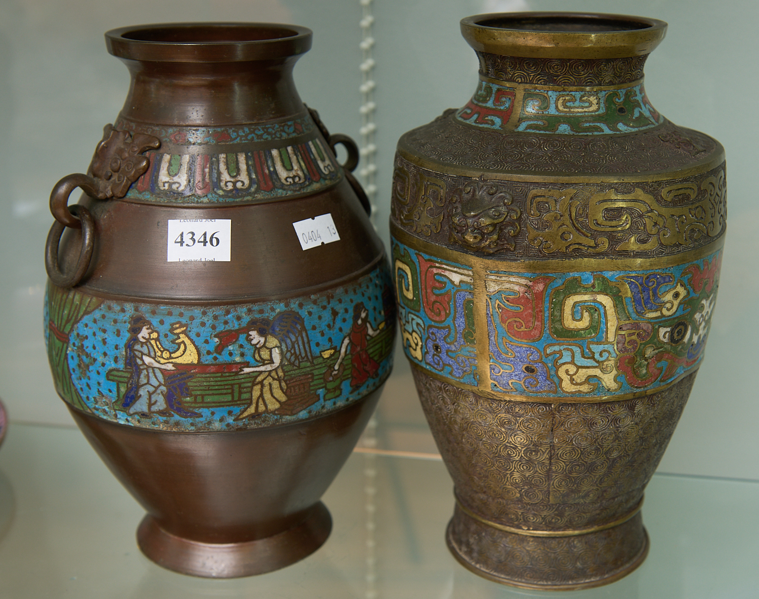 TWO JAPANESE CLOISONNE VASES H.24.5CM, LEONARD JOEL LOCAL DELIVERY SIZE: MEDIUM