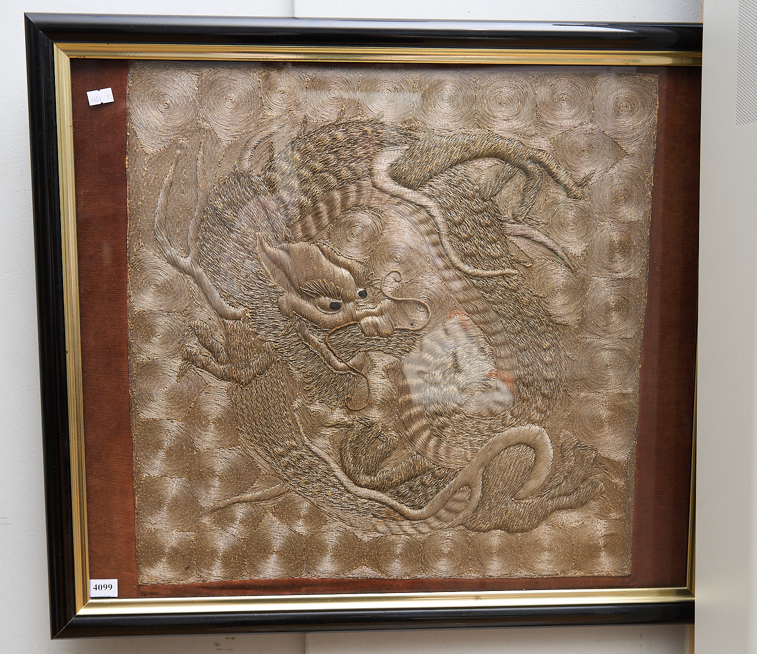A JAPANESE MEIJI PERIOD FRAMED DRAGON EMBROIDERY H.58CM X W.65CM, LEONARD JOEL LOCAL DELIVERY SIZE: MEDIUM