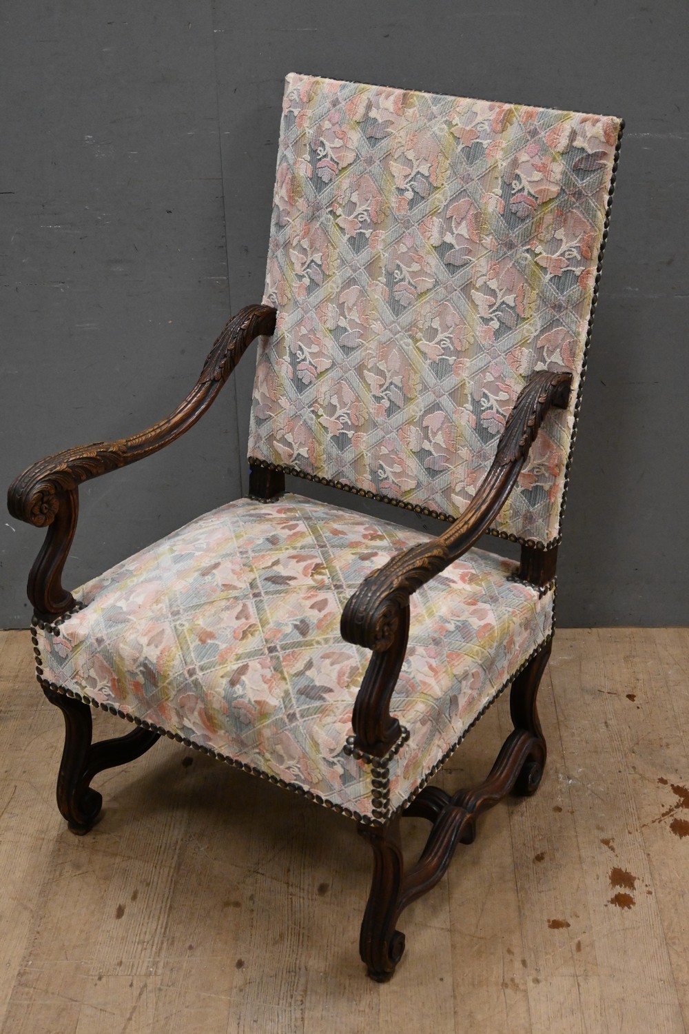 A SUPERB 19TH CENTURY LOUIS XIV SOLID OAK FAUTEUIL IN ORIGINAL TAPESTRY, c.1860's (10H x 65W x 74D CM) (LEONARD JOEL DELIVERY SIZE: LARGE)