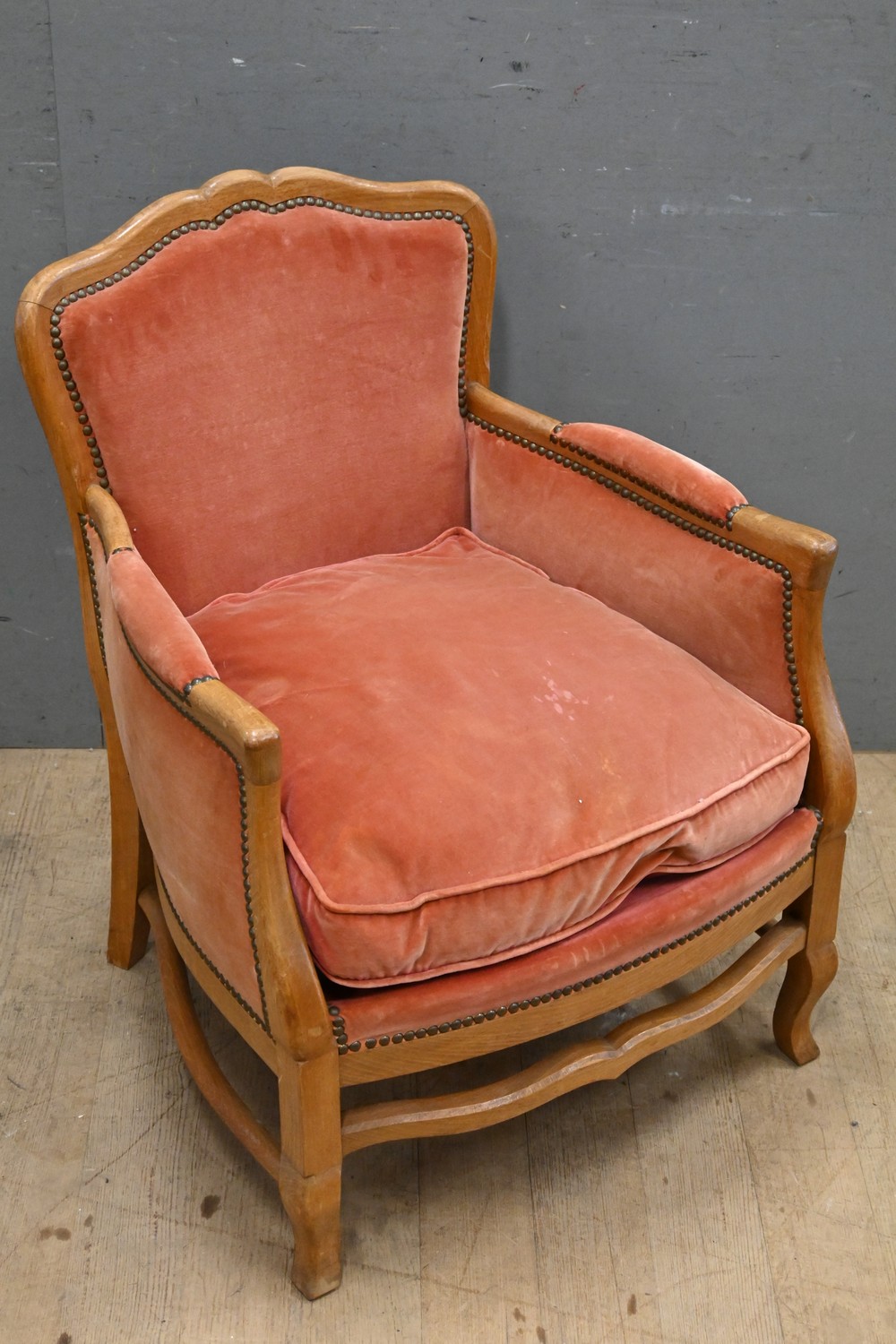 A FRENCH BEECH BERGERE (A/F) ( 78H X 63W X 64D CM) (LEONARD JOEL DELIVERY SIZE: LARGE)
