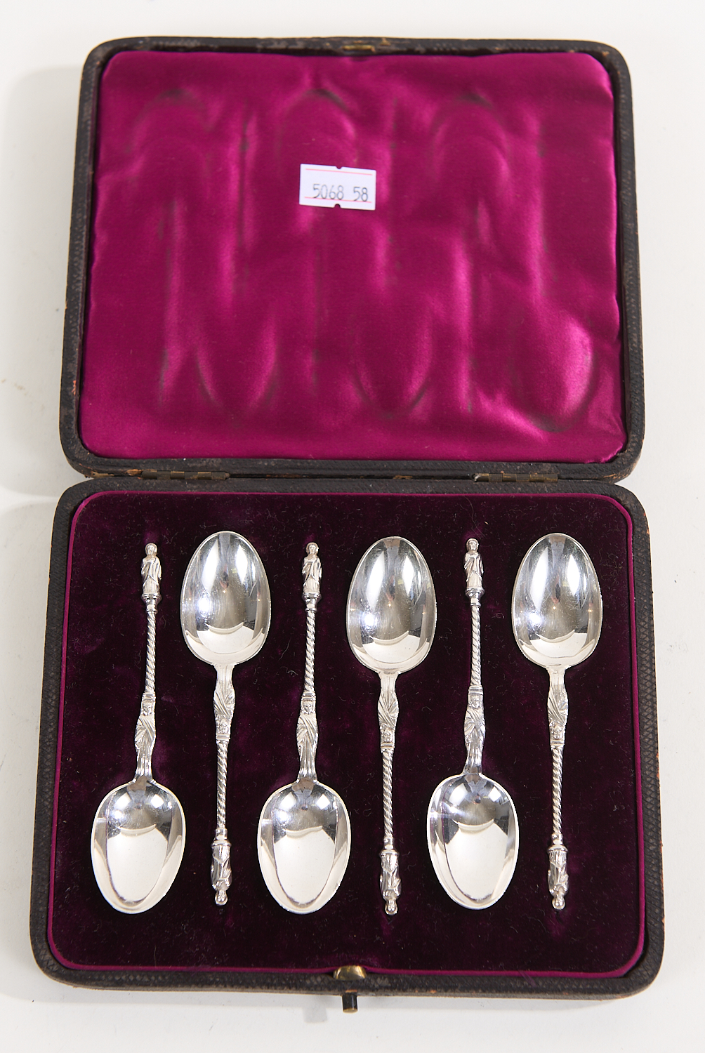 SIX VICTORIAN 1889 APOSTLE SPOONS, LONDON, IN ORIGINAL CASE WILLIAM HUTTON & SONS, LEONARD JOEL LOCAL DELIVERY SIZE: SMALL