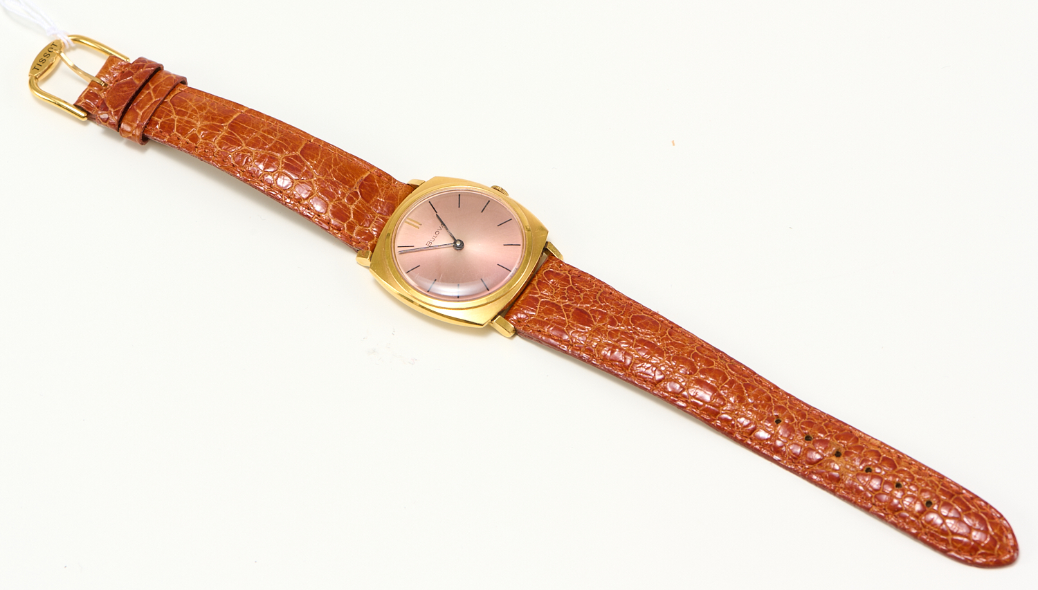 A WRISTWATCH BY BULOVA TO A TISSOT LEATHER STRAP, WATCH FACE INCLUDING SURROUND APPROXIMATELY 30MM X 30MM