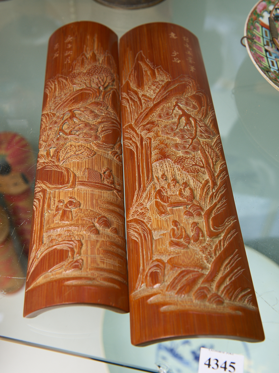 A PAIR OF CHINESE BAMBOO ARMRESTS L.31CM, LEONARD JOEL LOCAL DELIVERY SIZE: SMALL