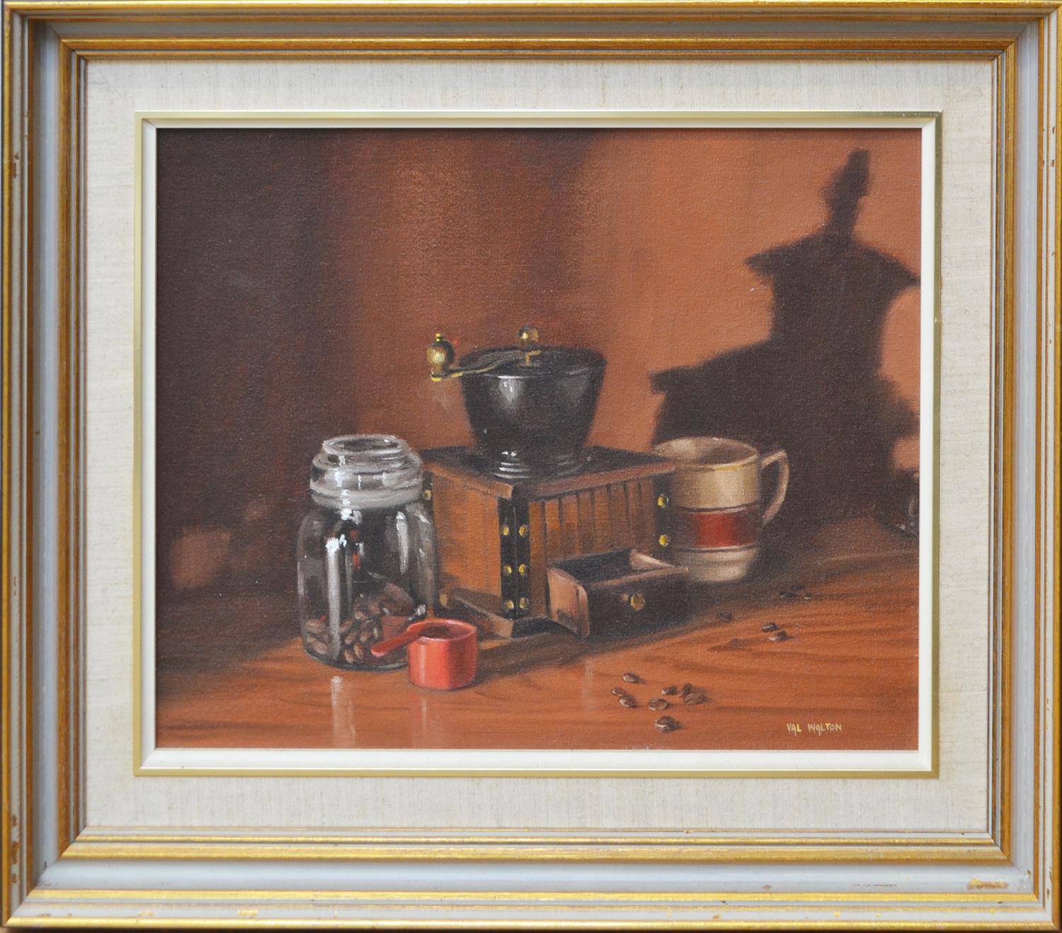 VAL WALTON, COFFEE TIME, OIL ON BOARD, 35 X 44CM