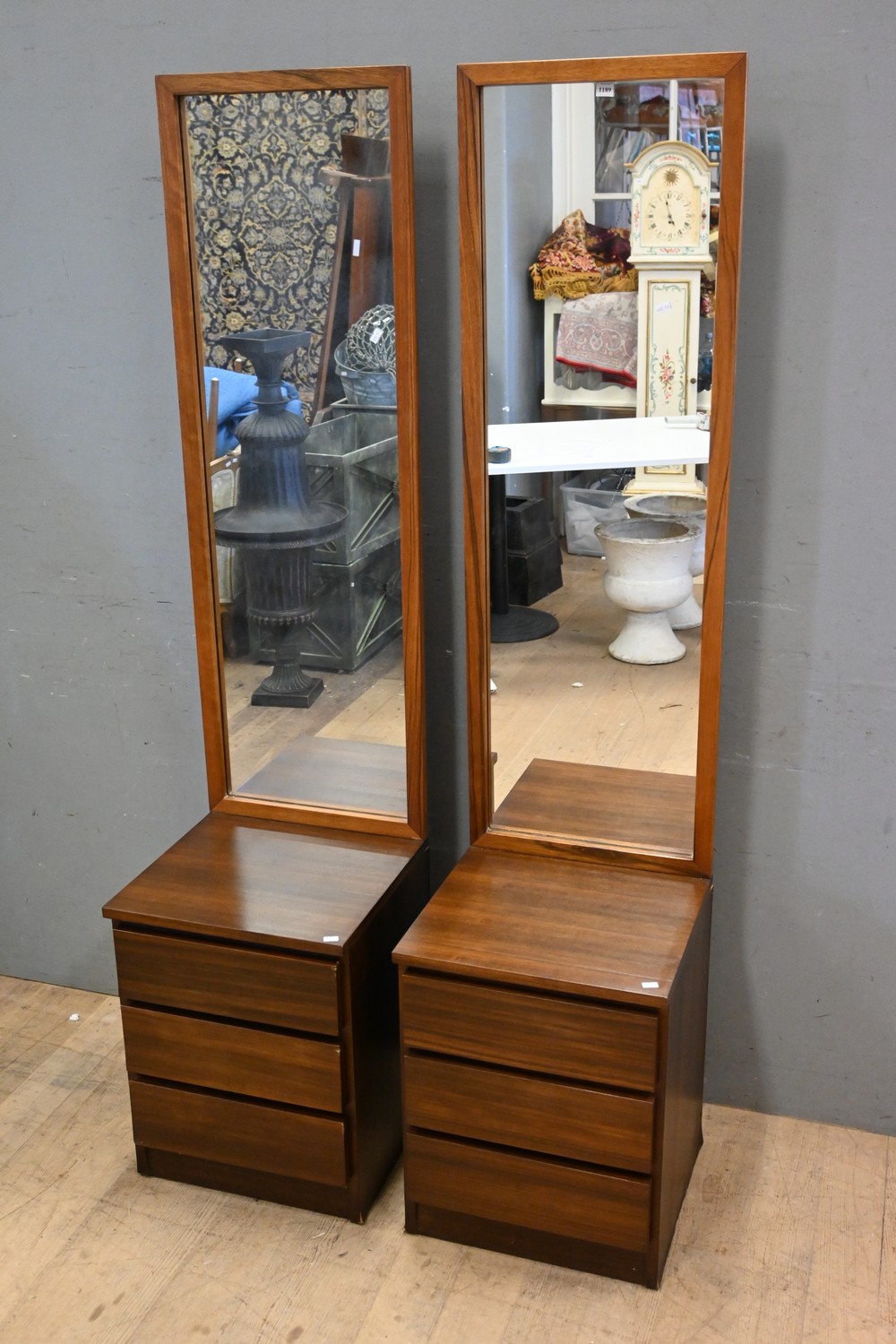 A PAIR OF VENEERED THREE DRAW CHESTS WITH VANITY MIRROR (A/F) (181H x 42W x 40D CM) (PLEASE NOTE THIS HEAVY ITEM MUST BE REMOVED BY CARRIERS AT THE CUSTOMER'S EXPENSE. LEONARD JOEL STAFF CANNOT ASSIST CARRYING THIS ITEM) (X-LARGE ITEM)