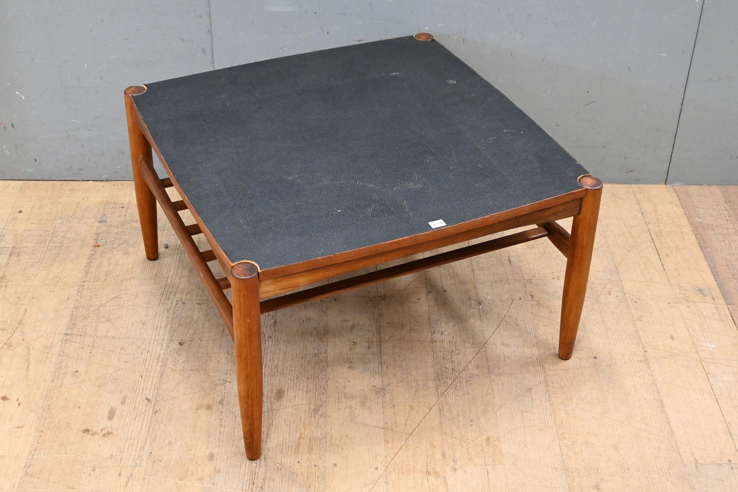 A 1960S TEAK SQUARE COFFEE TABLE (A/F) ( 42H X 70W X 70D CM) (LEONARD JOEL DELIVERY SIZE: LARGE)