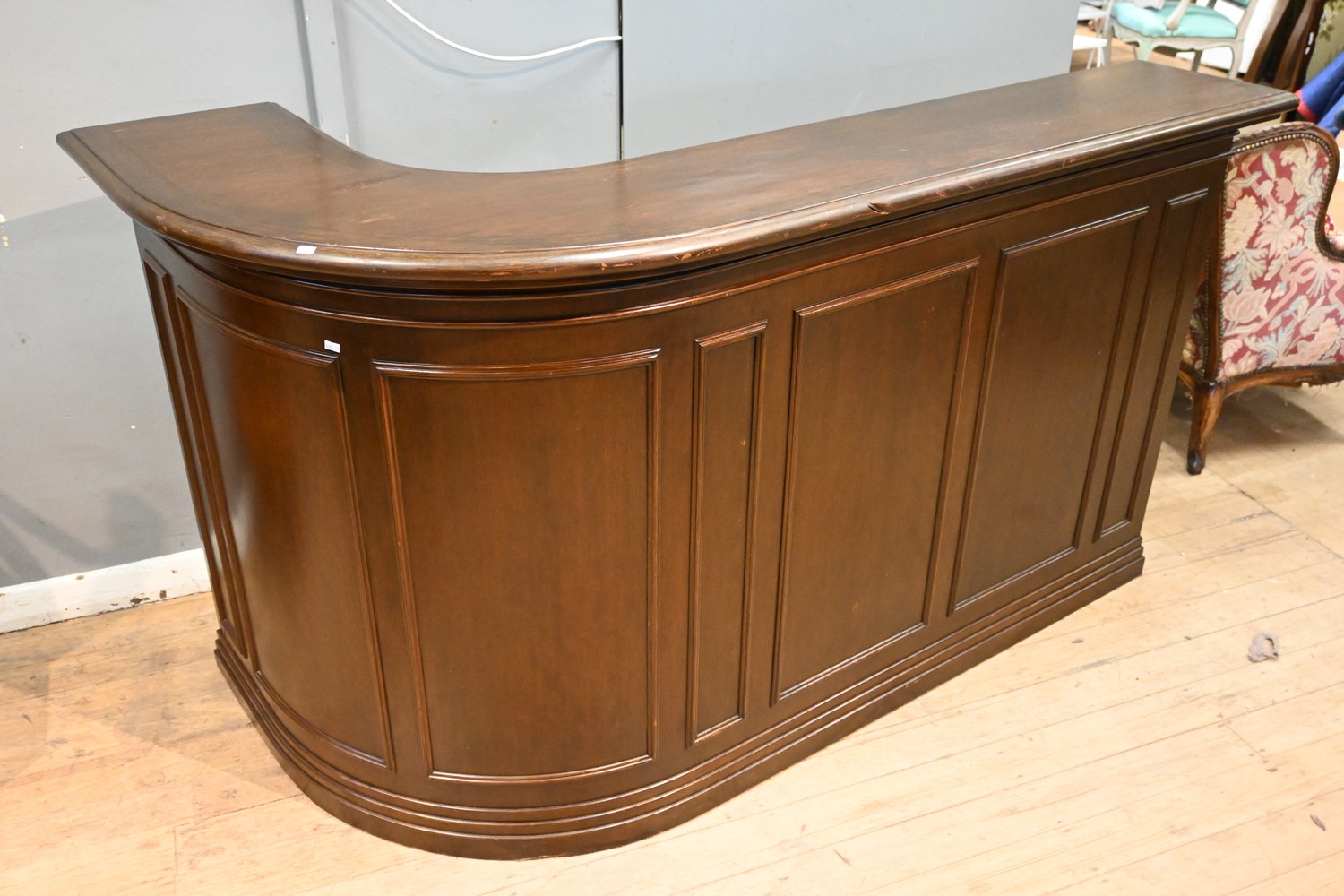 AN OAK PANELLED BAR (A/F) (107H x 190W x 98D CM) (PLEASE NOTE THIS HEAVY ITEM MUST BE REMOVED BY CARRIERS AT THE CUSTOMER'S EXPENSE. LEONARD JOEL STAFF CANNOT ASSIST CARRYING THIS ITEM) (X-LARGE ITEM)