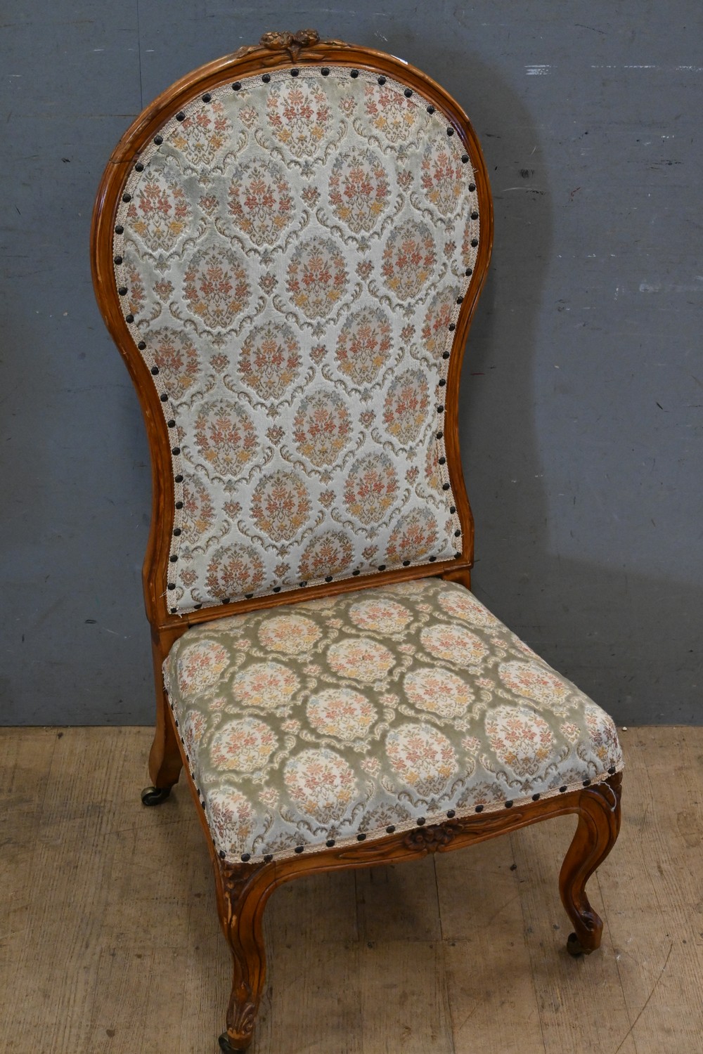 A LOUIS XV STYLE OAK BEDROOM CHAIR (H105 X W49 X D45 CM) (LEONARD JOEL DELIVERY SIZE: LARGE)