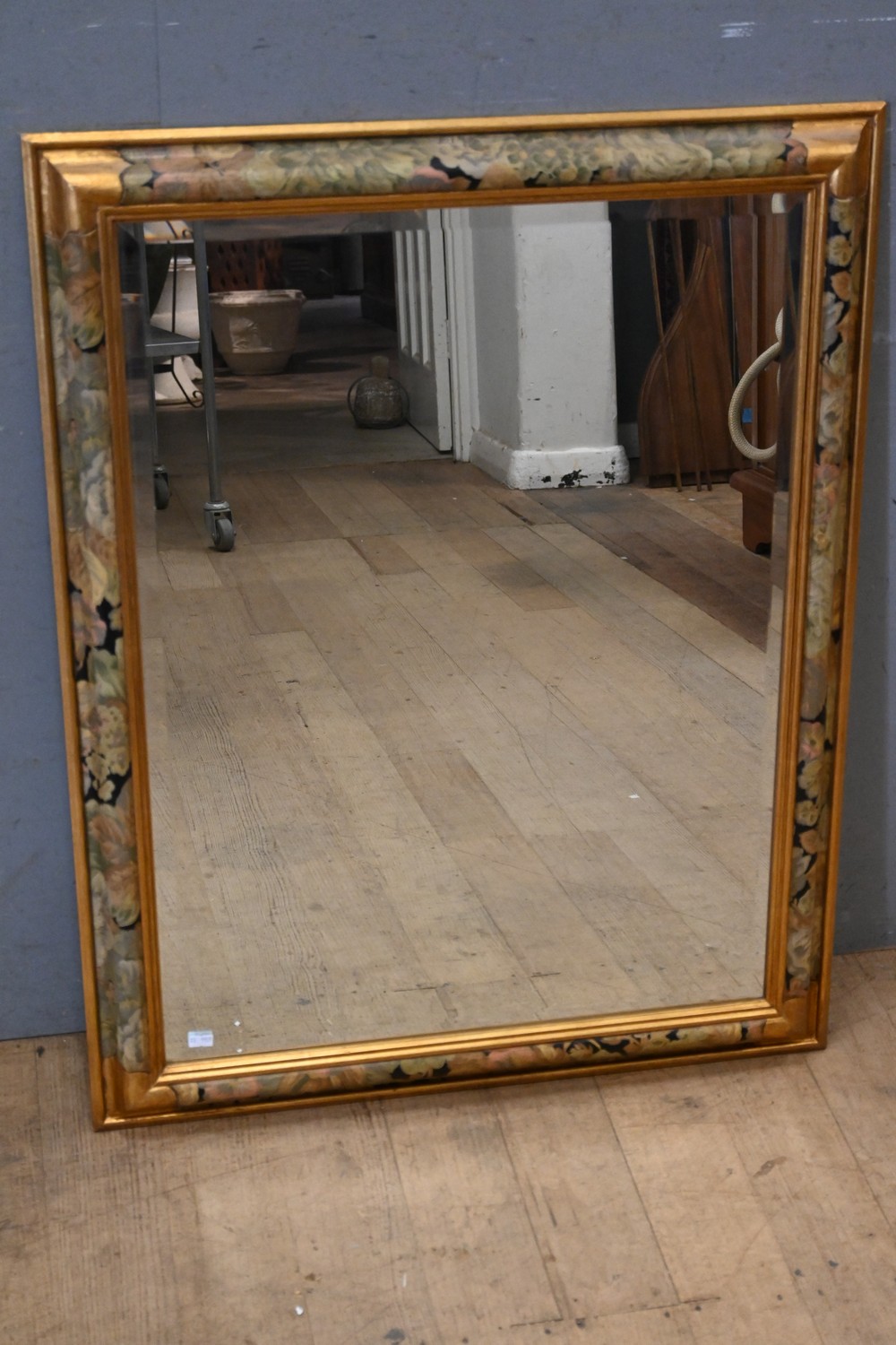 A PAINTED AND GILT FRAMED BEVEL EDGED WALL MIRROR (H92 X W73 CM) (LEONARD JOEL DELIVERY SIZE: LARGE)