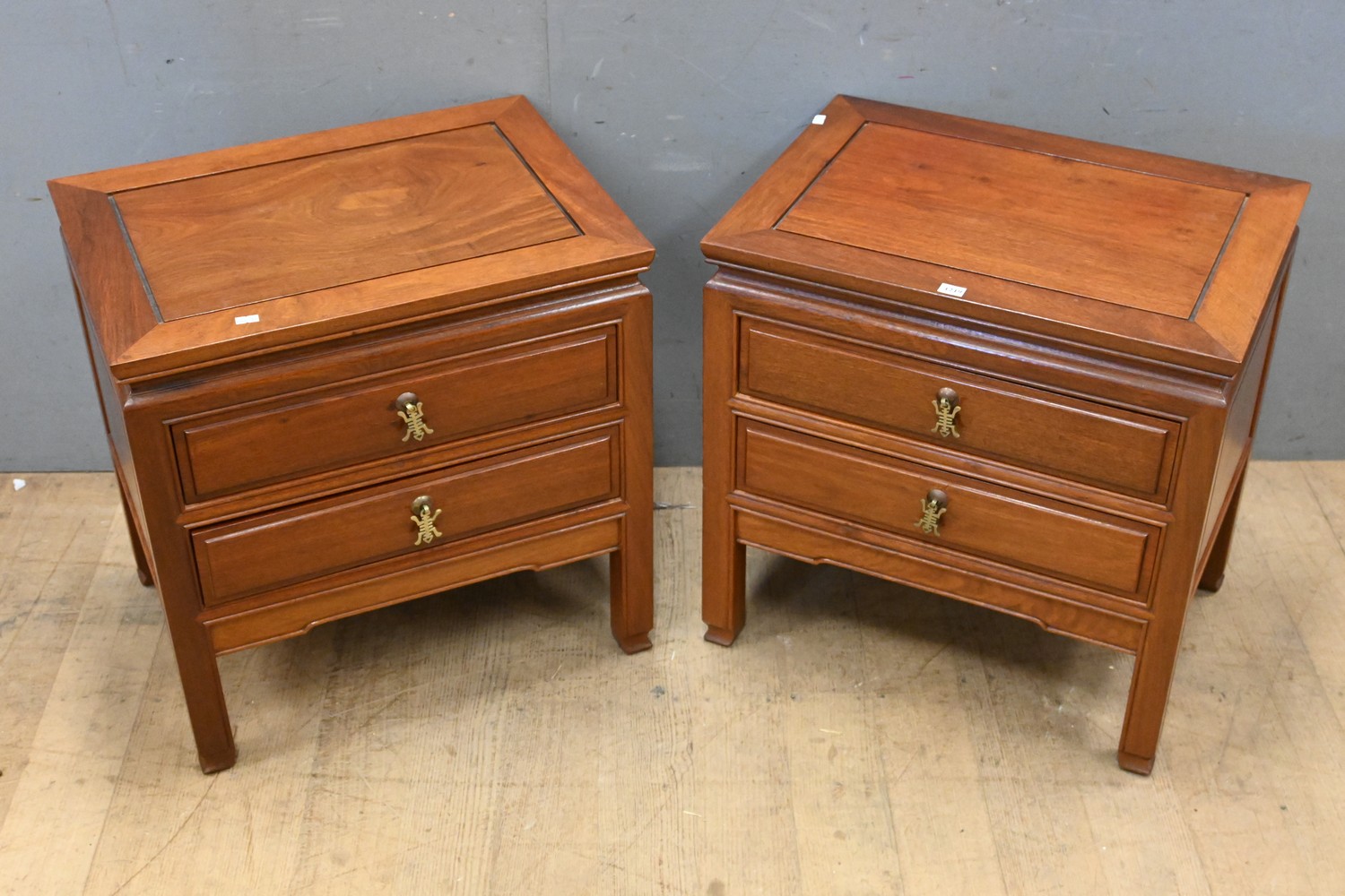A PAIR OF CHINESE TWO DRAWER BEDSIDE CABINETS (56H x 56W x 41D CM) (LEONARD JOEL DELIVERY SIZE: LARGE)