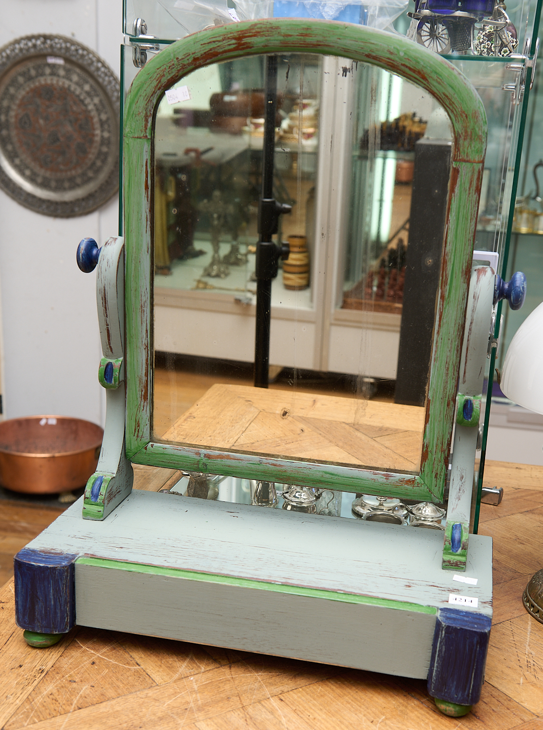 A WOODEN PAINTED TABLE MIRROR H. 61CM X 44.5CM X D. 20.5CM, LEONARD JOEL LOCAL DELIVERY SIZE: MEDIUM