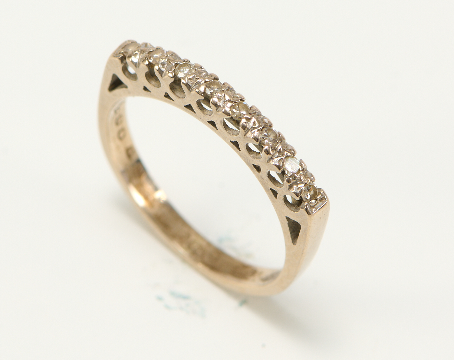 GOOD CONDITION, SOME TARNISH TO INTERIOR BAND, ALL DIAMONDS IN TACT