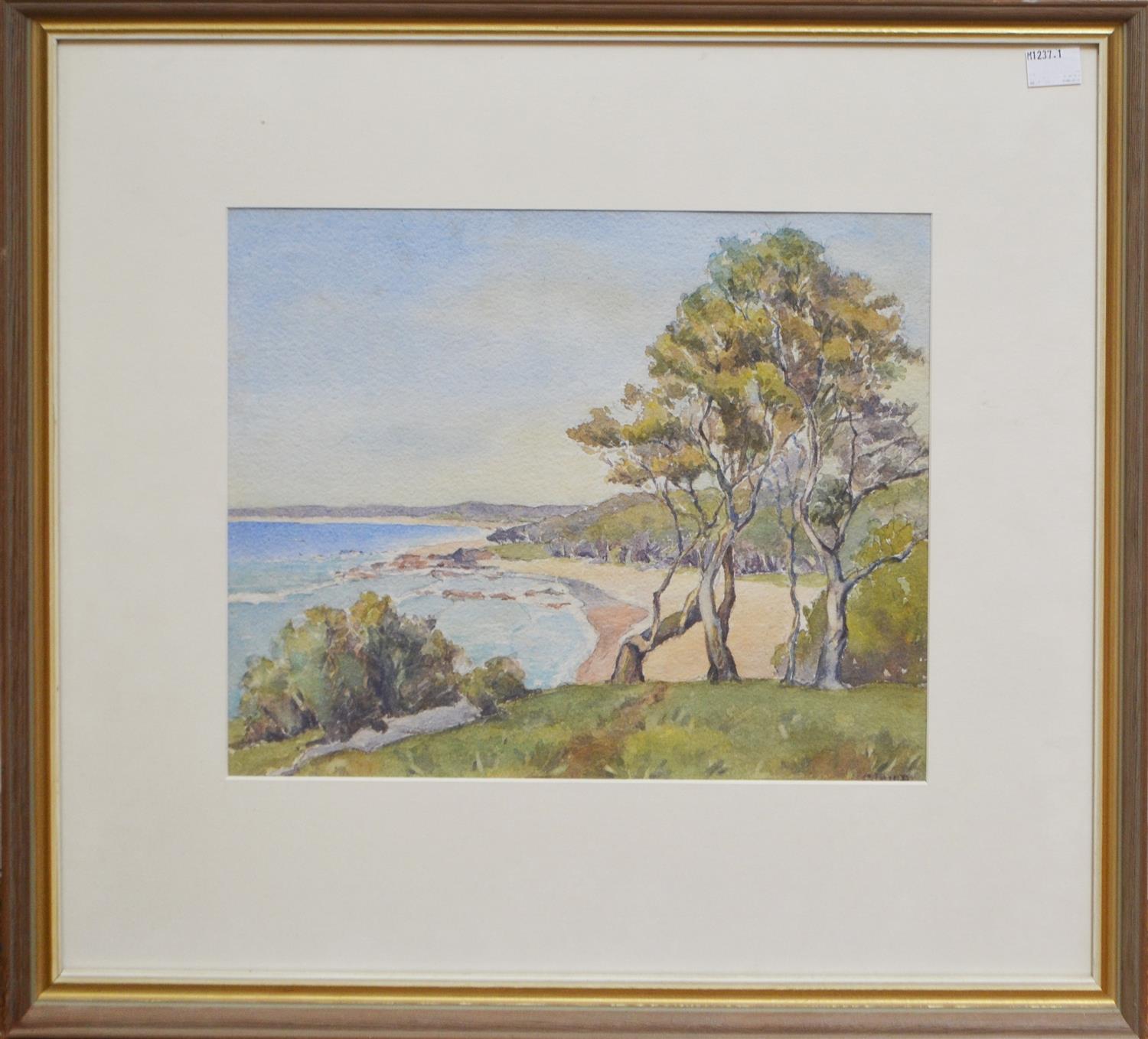 SIGNED ILLEGIBLY, BAY SCENE, WATERCOLOUR, 24 X 30CM