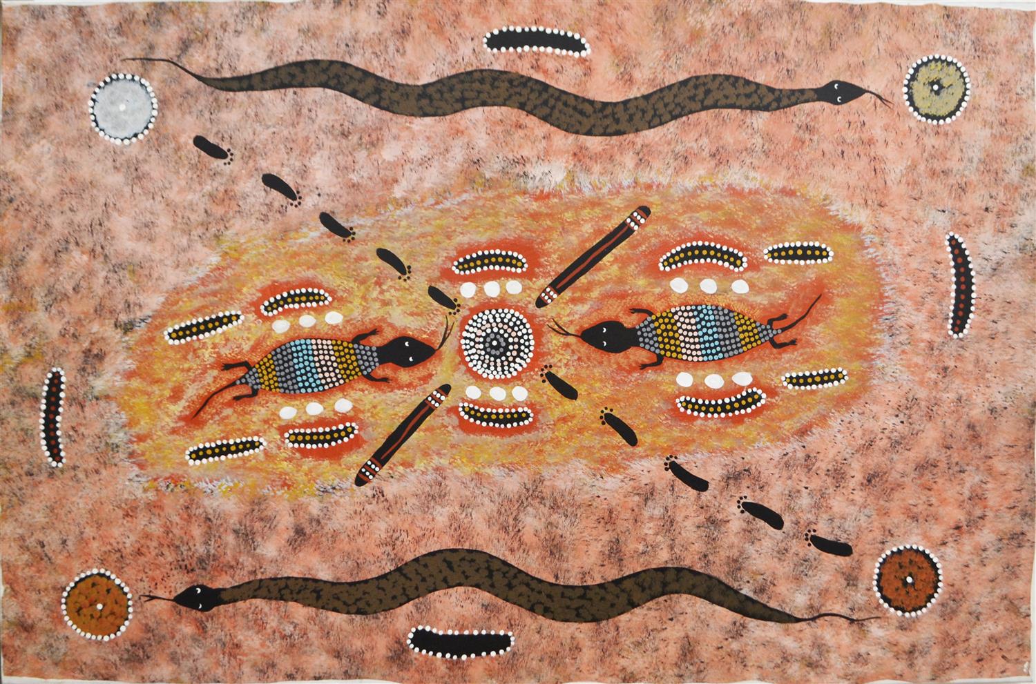 BARNEY DANIELS TJUNGARRAYI, MENS CEREMONY DREAMING, ACRYLIC ON CANVAS, 86 X 130CM