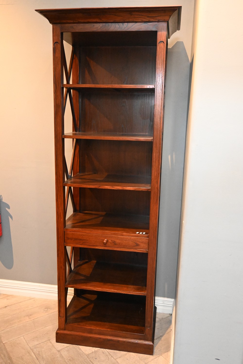 A TALL SIX TIER OPEN BOOKSHELF (H230 X W86 X D53 CM) (PLEASE NOTE THIS HEAVY ITEM MUST BE REMOVED BY CARRIERS AT THE CUSTOMER'S EXPENSE. LEONARD JOEL STAFF CANNOT ASSIST CARRYING THIS ITEM) (X-LARGE ITEM)