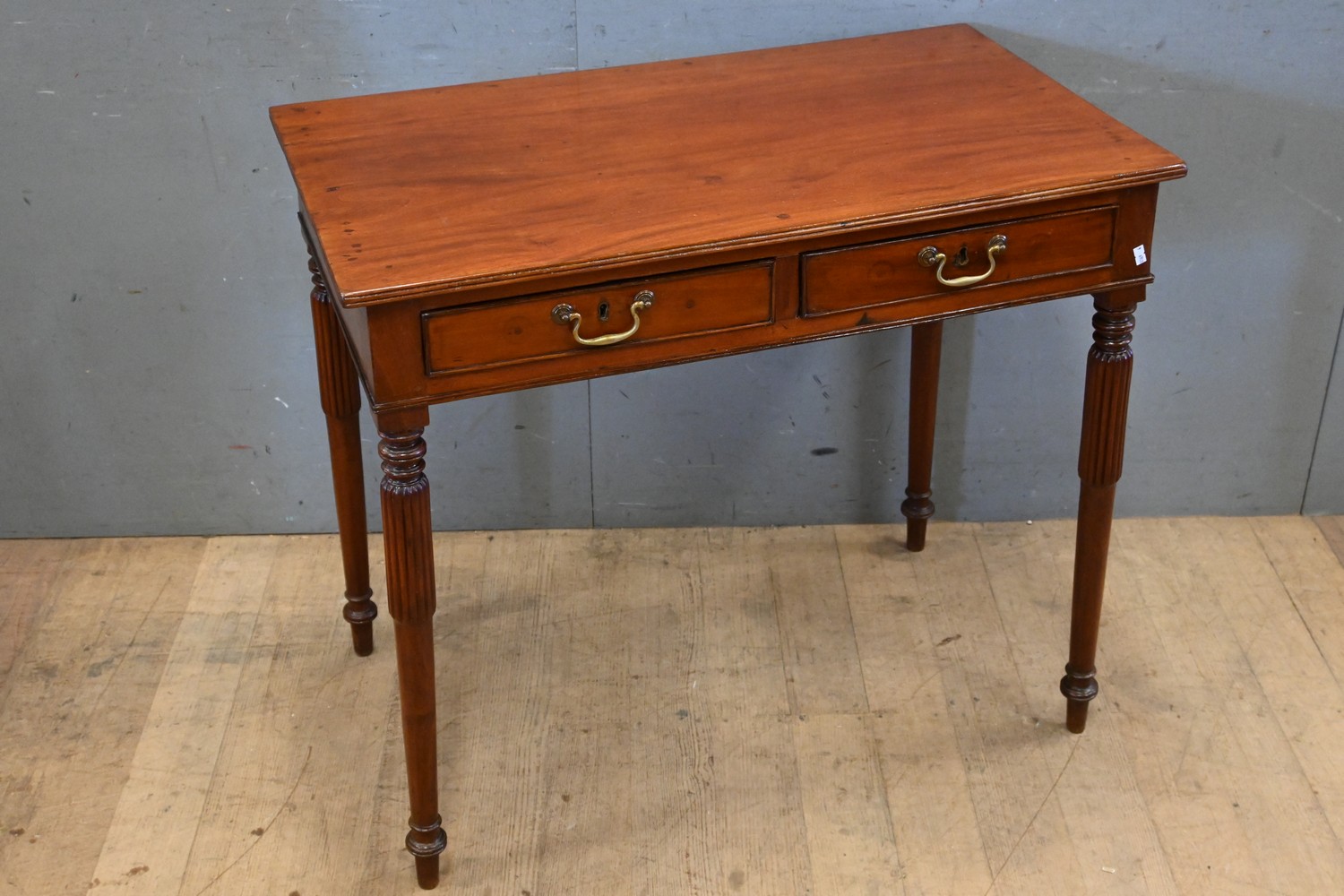 AN ANTIQUE MAHOGANY TWO DRAWER WRITING TABLE (H80 X W91 X D53 CM) (LEONARD JOEL DELIVERY SIZE: LARGE)