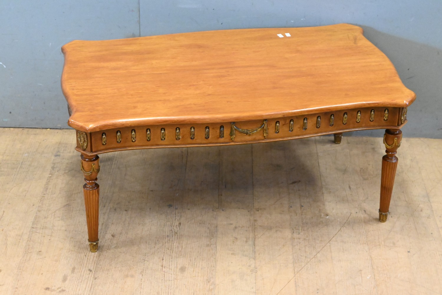 A NEO CLASSICAL STYLE COFFEE TABLE WITH BRASS DETAILING (H42 X W97 X D57 CM) (LEONARD JOEL DELIVERY SIZE: LARGE)