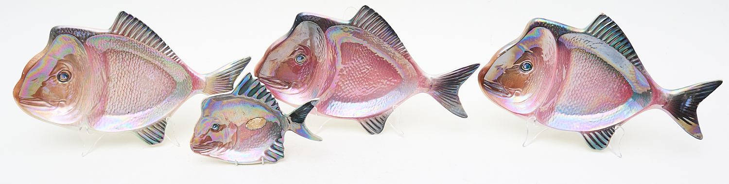 A GROUP OF FOUR WEMBLEY WARE LUSTRE GLAZED FISH DISHES L.32.5CM, LEONARD JOEL LOCAL DELIVERY SIZE: MEDIUM