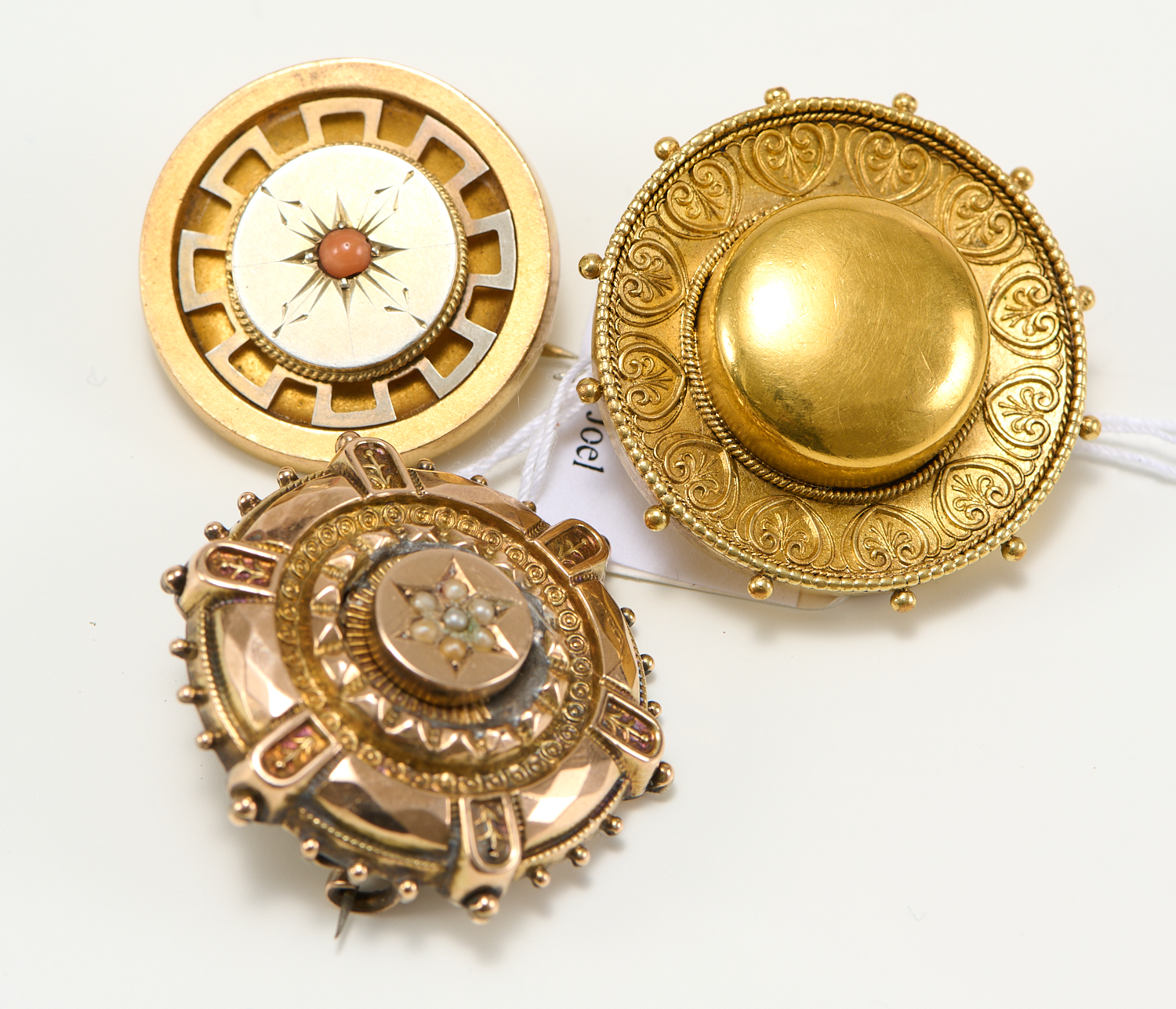 GOOD CONDITION FOR AGE, ALL STONES IN TACT, SIGNS OF WEAR TO THE BACK OF THE SEED PEARL SET TARGET BROOCH
