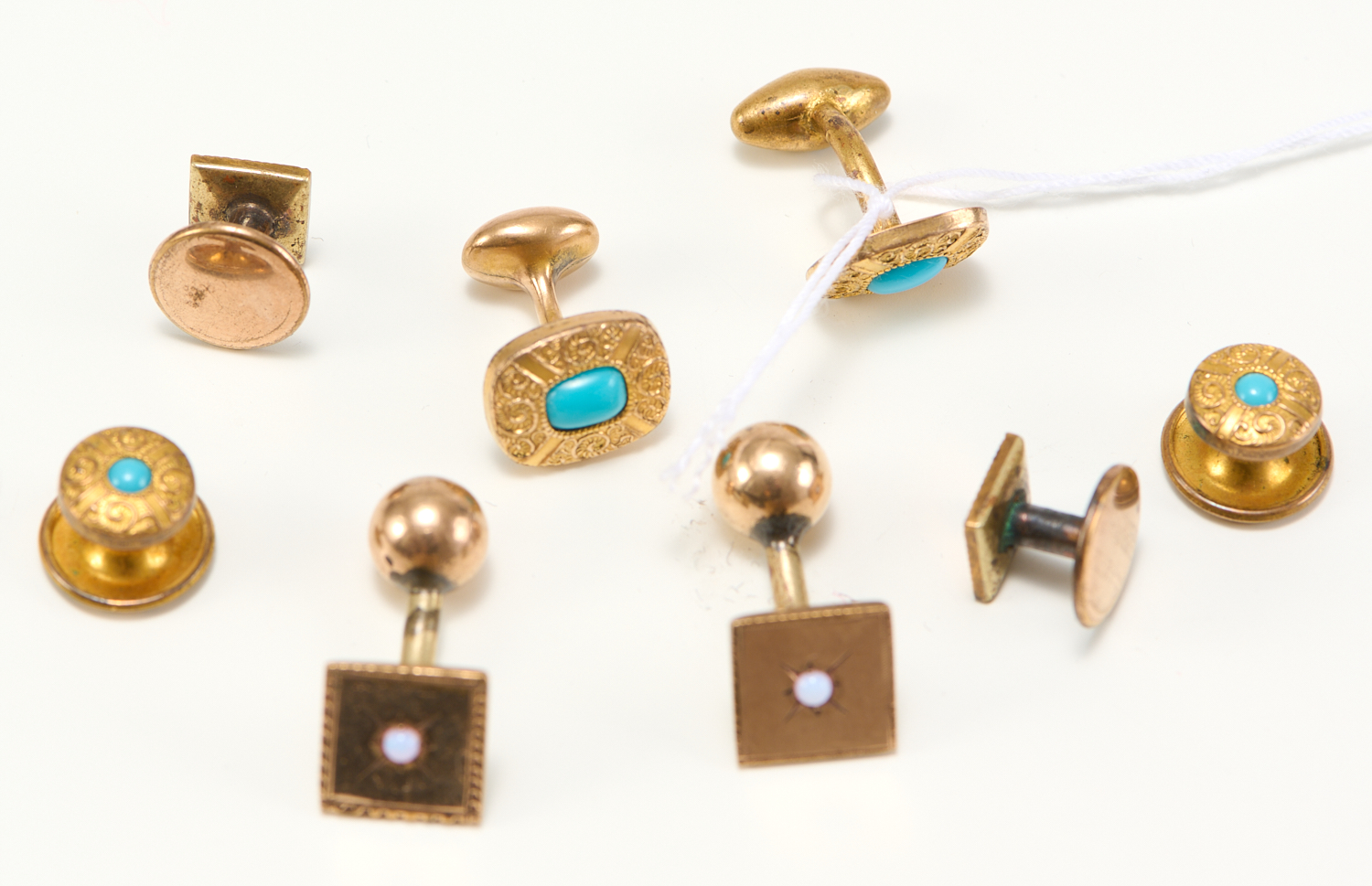 TWO PAIRS OF GOLD LINED CUFFLINKS AND STUDS