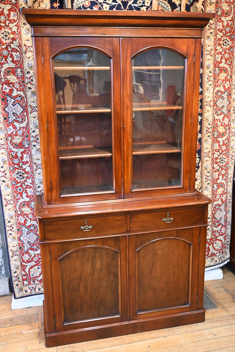 A MAHOGANY DOUBLE BODIED GLASS FRONTED DISPLAY CABINET (227H X 126W X 47D CM) (PLEASE NOTE THIS HEAVY ITEM MUST BE REMOVED BY CARRIERS AT THE CUSTOMER'S EXPENSE. LEONARD JOEL STAFF CANNOT ASSIST CARRYING THIS ITEM) (X-LARGE ITEM)