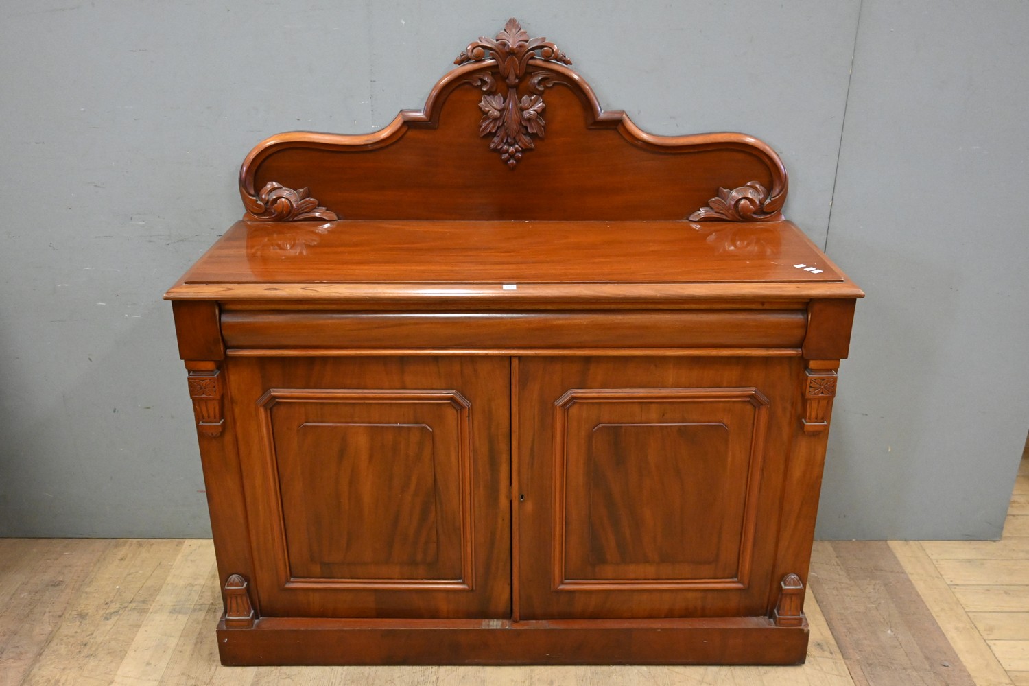 A DECORATIVELY CARVED VICTORIAN CHIFFONIER (A/F) (139H x 137W x 50D CM) (PLEASE NOTE THIS HEAVY ITEM MUST BE REMOVED BY CARRIERS AT THE CUSTOMER'S EXPENSE. LEONARD JOEL STAFF CANNOT ASSIST CARRYING THIS ITEM) (X-LARGE ITEM)