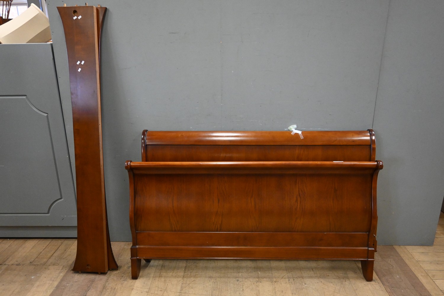 A TIMBER SLEIGH BED (A/F) (101H x 167W x 238D CM) (PLEASE NOTE THIS HEAVY ITEM MUST BE REMOVED BY CARRIERS AT THE CUSTOMER'S EXPENSE. LEONARD JOEL STAFF CANNOT ASSIST CARRYING THIS ITEM) (X-LARGE ITEM)