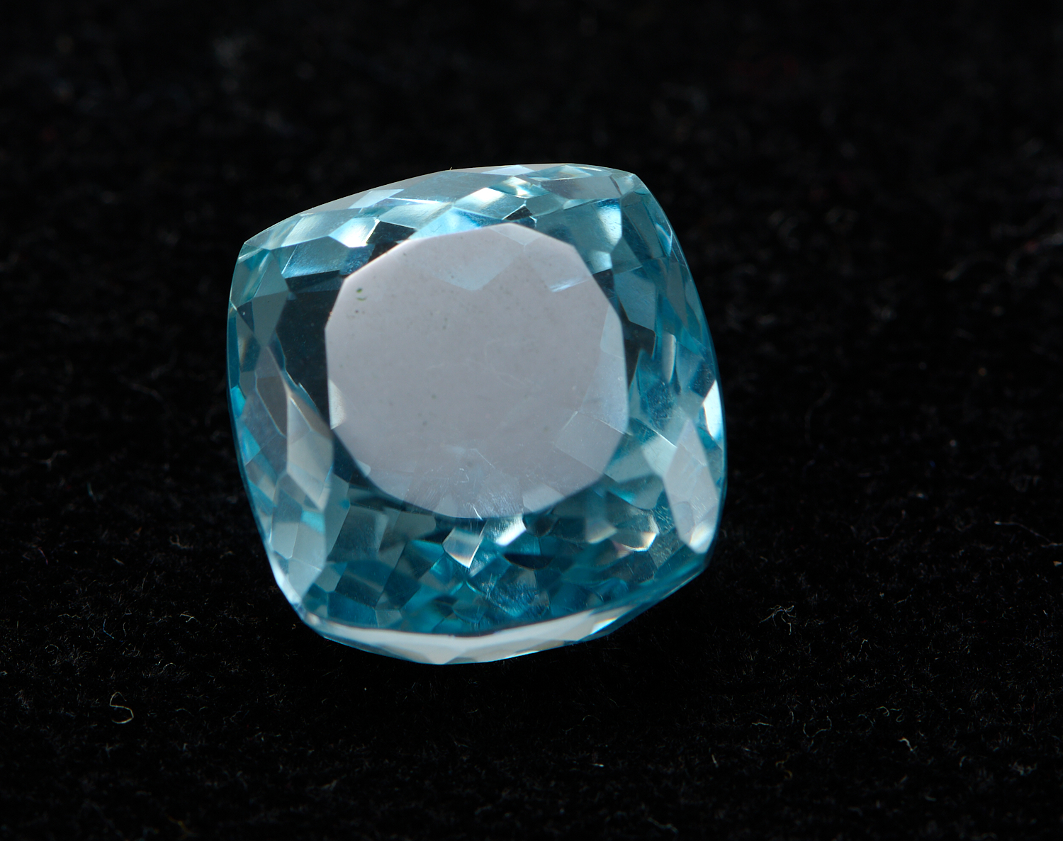 A LOOSE FANCY CUSHION CUT AQUAMARINE, IF/CLEAN, SIZE APPROXIMATELY 16.9MM X 16.9MM X 12.6MM, 27.3CTS