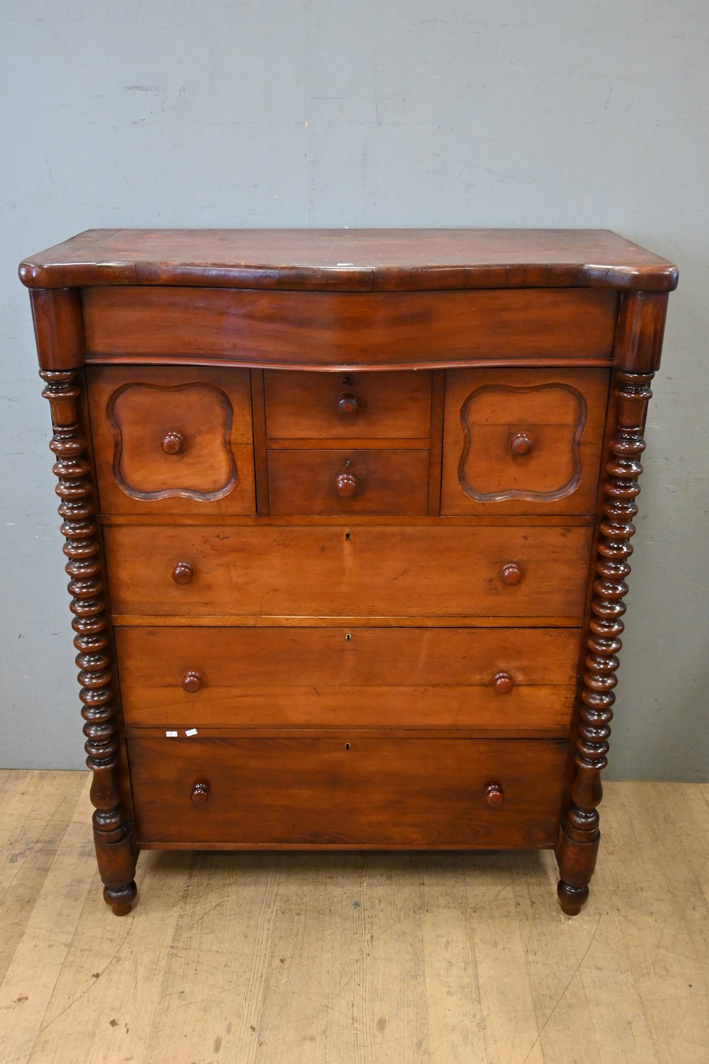 A VICTORIAN EIGHT DRAWER CHEST WITH BARLEY TWIST DETAILING (A/F) ( 140H X 107W X 53D CM) (PLEASE NOTE THIS HEAVY ITEM MUST BE REMOVED BY CARRIERS AT THE CUSTOMER'S EXPENSE. LEONARD JOEL STAFF CANNOT ASSIST CARRYING THIS ITEM) (X-LARGE ITEM)