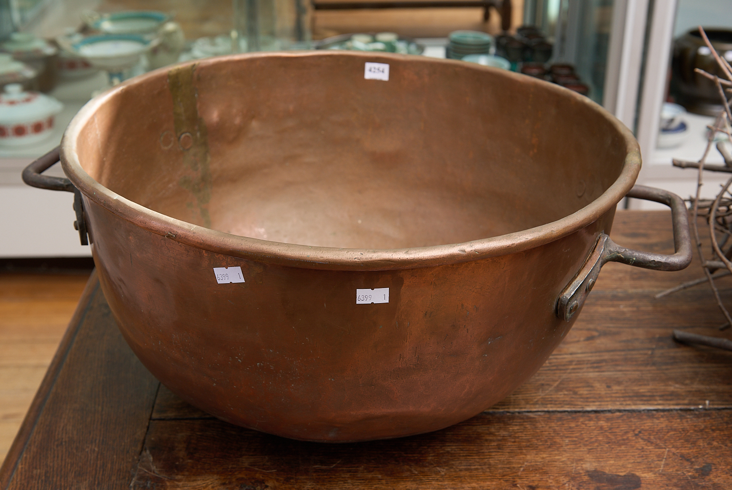 A LARGE COPPER CHOCOLATE PAN H.25CM, DIA.49CM, LEONARD JOEL LOCAL DELIVERY SIZE: MEDIUM