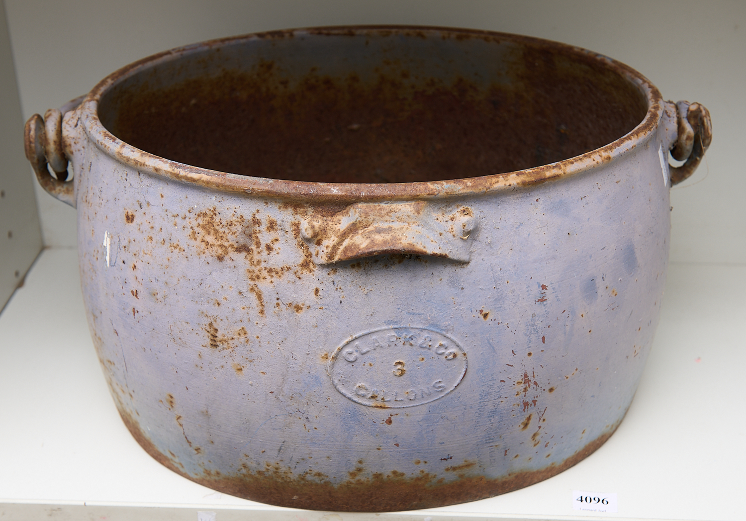 A CAST IRON POT BY CLARK AND CO H.20CM X W.40CM , LEONARD JOEL LOCAL DELIVERY SIZE: MEDIUM