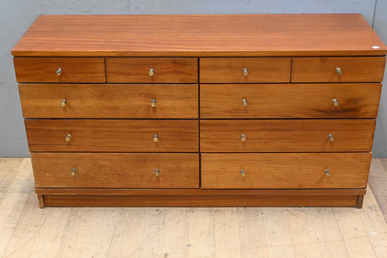 A MID CENTURY EIGHT DRAWER AUSTRALIAN CHEST OF DRAWERS (A/F) (76H x 145W x 48D CM) (PLEASE NOTE THIS HEAVY ITEM MUST BE REMOVED BY CARRIERS AT THE CUSTOMER'S EXPENSE. LEONARD JOEL STAFF CANNOT ASSIST CARRYING THIS ITEM) (X-LARGE ITEM)