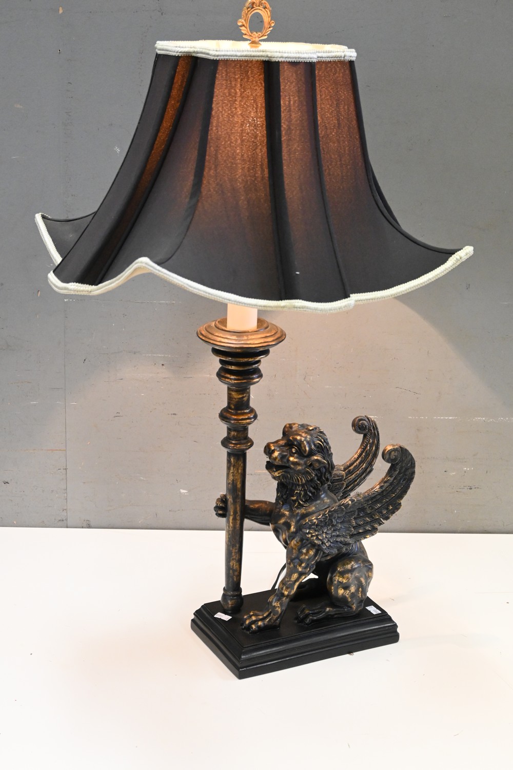 A HIGHLY FIGURAL AND DECORATIVE LAMP WITH BLACK SILK SHADE (84H CM) (LEONARD JOEL DELIVERY SIZE: MEDIUM)