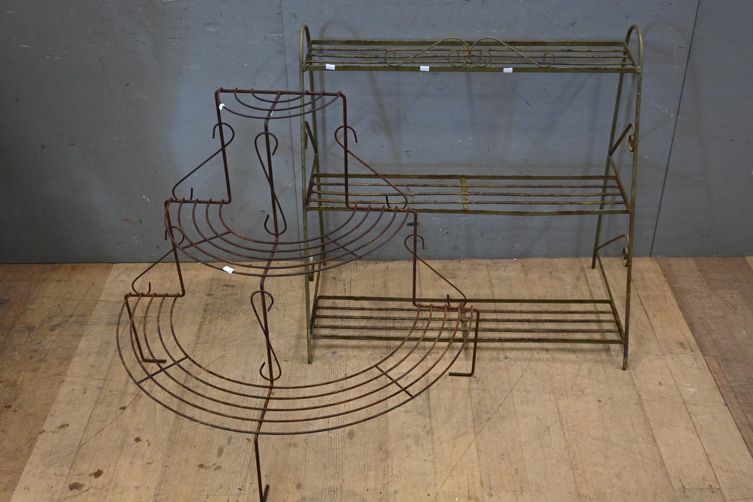 TWO CAST IRON THREE TIER PLANT STANDS (H80 X W85 X D48 CM) (LEONARD JOEL DELIVERY SIZE: LARGE)