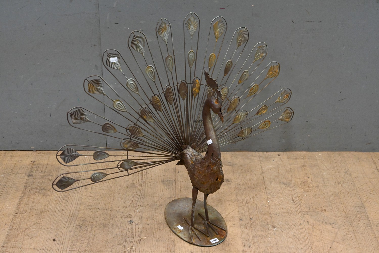 A METAL PEACOCK FIGURE (A/F) (83W CM) (LEONARD JOEL DELIVERY SIZE: LARGE)