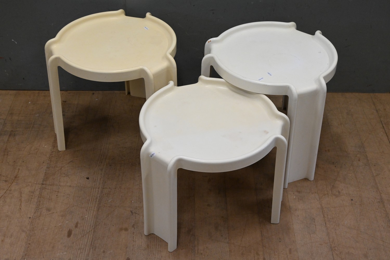A GROUP OF THREE 1960S WHITE KARTELL TABLES - ALL SIGNED (40H x 47D CM) (LEONARD JOEL DELIVERY SIZE: LARGE)