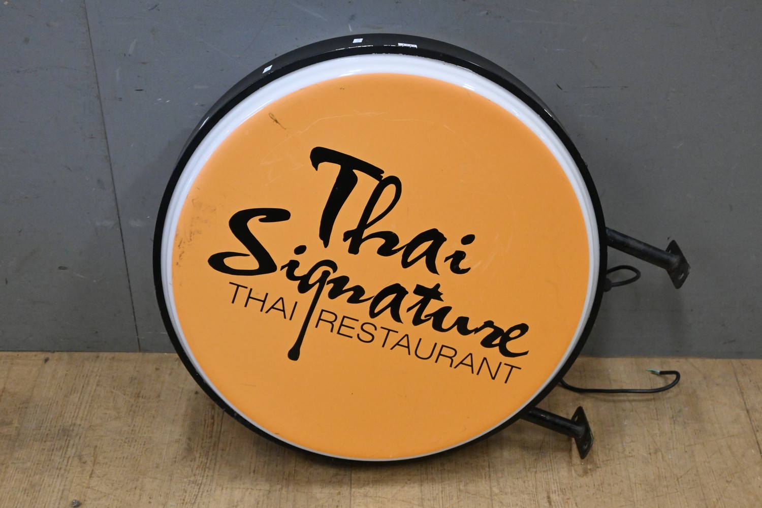 A HARD PLASTIC AND METAL BOUND LIGHT UP RESTUARANT SIGN ( 66 DIAMETER CM) (LEONARD JOEL DELIVERY SIZE: LARGE)