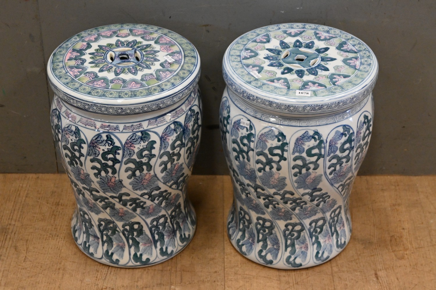 A PAIR OF ORIENTAL GLAZED CERAMIC PLANT STANDS (41H x 29D CM) (LEONARD JOEL DELIVERY SIZE: LARGE)