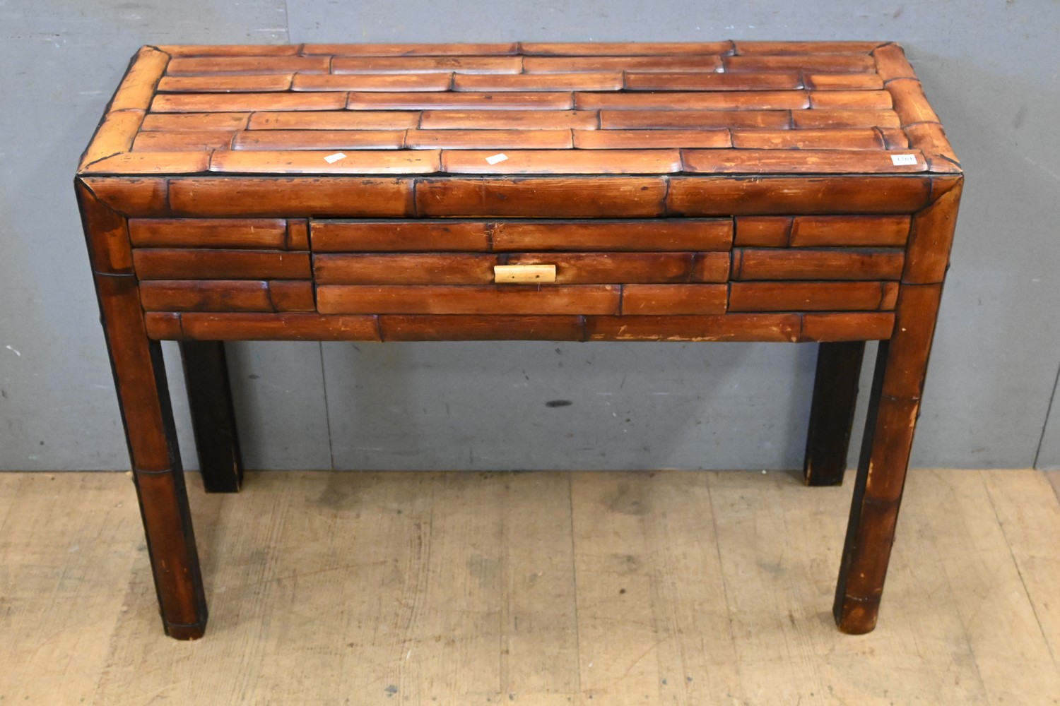 A SOLID BAMBOO SIDE TABLE WITH SINGLE DRAWER ( 72 X 98W X 36D CM) (LEONARD JOEL DELIVERY SIZE: LARGE)