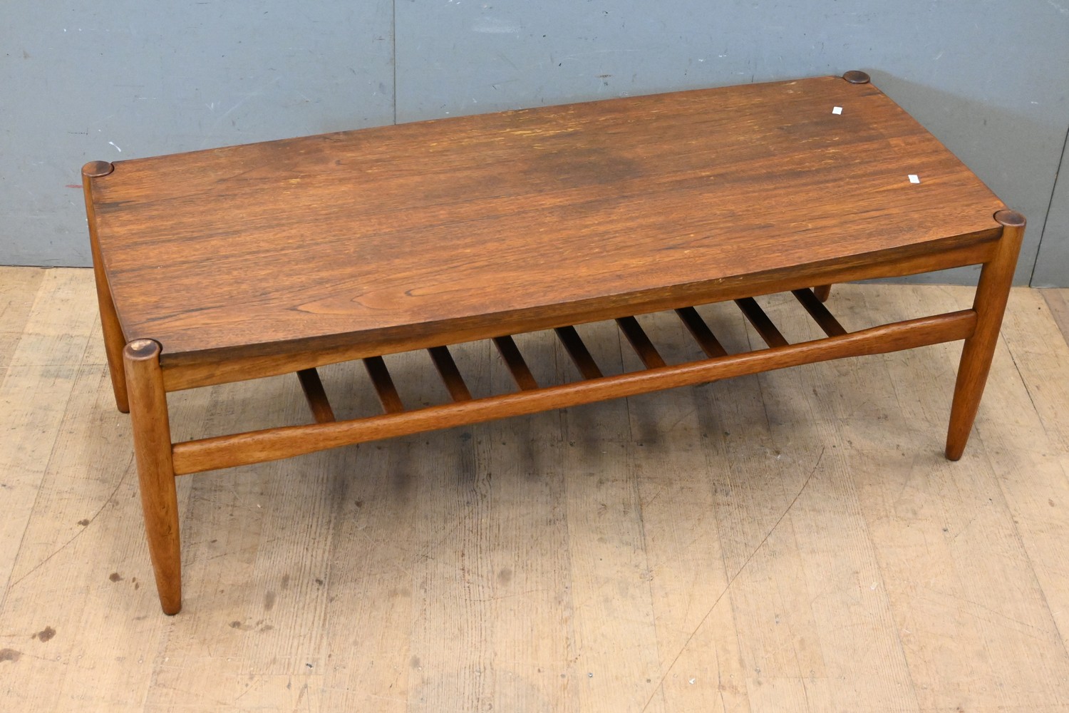 AN AUSTRALIAN 1960S TEAK 2 TIER COFFEE TABLE WITH BULLET LEGS AND REVERSIBLE TOP (H41 X W121 X D52 CM) (LEONARD JOEL DELIVERY SIZE: LARGE)
